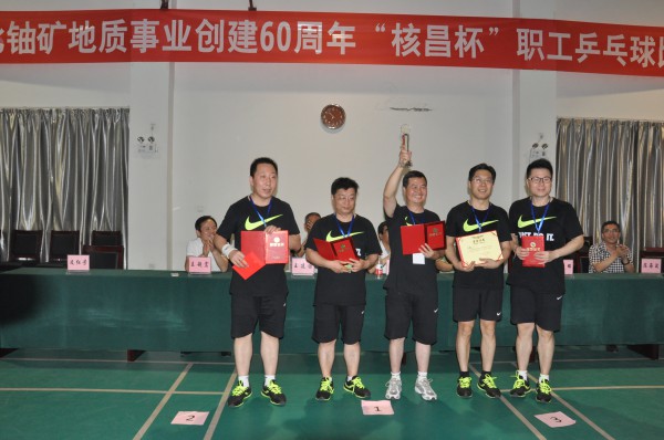 來自集團13家子公司代表隊的117名乒乓球選手,經過三天緊張激烈的角逐,215醫院代表隊摘取男子團體第一名,211大隊和214大隊分獲男子團體二、三名;214大隊、215醫院、核昌公司分別取得了女子團體前三名;男子單打冠、亞、季軍分別被來自215醫院的朱國優、214隊的單志剛、215醫院的左毅瓜分;女子單打冠亞季軍由來自214隊的張昆、杜海燕和來自224大隊的宋愛菊分享;男子雙打比賽的前三名被來自215醫院的朱國優、朱航、核昌公司的李生、馬驥以及來自214隊的單志剛、李新平分別占有;女子雙打前三名被214隊的張昆、杜海燕,215醫院的田燕妮、姚麗萍獲得;領導干部單打冠軍被214大隊黨委書記李新平摘走,核昌公司紀委書記田孟華獲得亞軍,綜合分析測試中心黨委書記屈宣宗奪得第三名。核昌公司取得優秀組織獎。