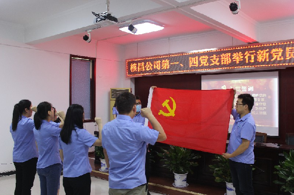 值此中國共產黨成立九十九周年之際,7月1日上午,核昌公司第一、四黨支部在公司大會議室舉行新黨員入黨宣誓儀式。參加儀式的有公司黨委工作部部長,團委書記,第一、四黨支部全體黨員、入黨積極分子。大會由第四黨支部書記楊艷主持。